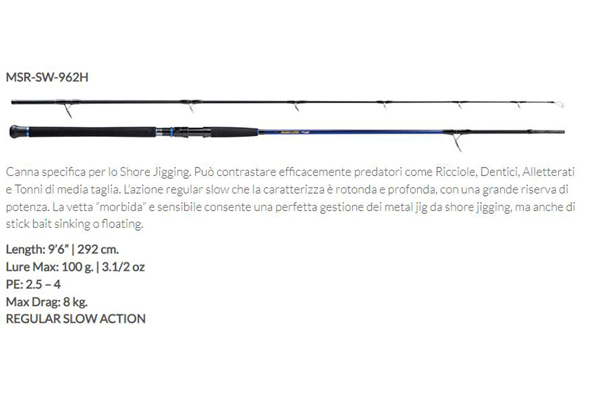 SKIRMJAN R SALTWATERMSR-SW-962H 9'6'' Max100gr 2.5-4 PE Max drag:8kg
