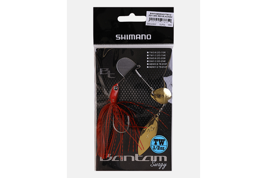 Lo Swagy è uno spinnerbait della linea Bantam Shimano ideato per la pesca al Black Bass . Spinnerbait molto compatto ed innovativo , con testa composta da due sezioni di differenti metalli di cui quella inferiore in tungsteno. Nella parte inferiore è presente un occhiello che permette modifiche all’assetto con eventuali aggiunte di pesi o aggiunte di trailer. In acqua il nuoto è molto lineare, la testa si dispone verso l’alto facendo si che le palette nuotino in asse con la superficie dell’acqua. Disponibile in due versione : TW (Colorado/Willow ) oppure DW (doppia paletta Willow).
